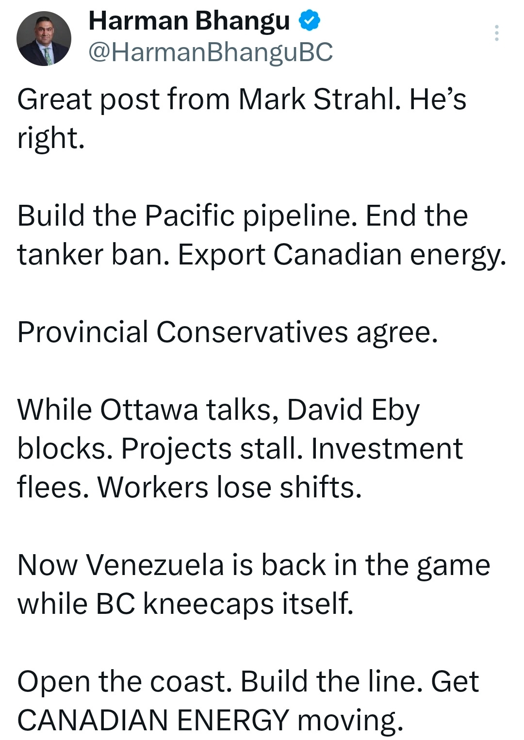 What we’re seeing instead is paralysis disguised as pragmatism. While other countries move to secure supply and investment, British Columbia stalls projects, signals hostility, and watches capital and jobs leave. Venezuela re-enters global markets while Canada kneecaps itself.